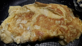 Tänään on niitä päiviä, jolloin tavanomainen lounas ei onnistu aikatauluihimme. Usein muulloinkin huutavaan nälkään ja energiantarpeeseen on näppärä konsti. Munakas monella eri tavalla valmistettuna maistuu aina ja pitää näläntunteen jopa useampia tunteja pois. Tulin nälissäni vesijumpasta. Tiesin talon Miehen saapuvan tuota pikaa vielä nälkäisempänä golfkentältä kiiruhtaakseen lähes saman tien parturiin. Kameran esilleotto ruokaa laittaessa on nykyisin niin rutiinia, että ennen kuin ehdin ajatella tarkemmin, aloin näpsiä kuvia munakkaan teosta.